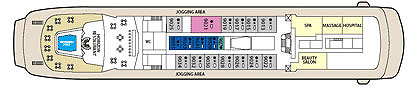 Spa / Massage / Beauty Salon Hospital Jogging Area Horizon Area Swimming Pool CABINS ON THIS DECK Inside Cabin: IC, ID Outside Cabin: XE Suite : S, SJ |